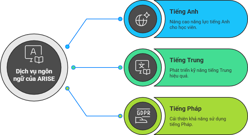 Trung tâm Ngoại ngữ ARISE, được cấp phép bởi Sở Giáo Dục & Đào Tạo Thành Phố Huế, cam kết cung cấp một môi trường học ngoại ngữ chất lượng cao, hiệu quả và hiện đại. Với trọng tâm là tiếng Anh, tiếng Trung và tiếng Pháp, trung tâm hướng đến việc nâng cao năng lực ngôn ngữ cho học sinh, sinh viên và người đi làm, mở ra những cơ hội học tập và nghề nghiệp rộng lớn hơn.